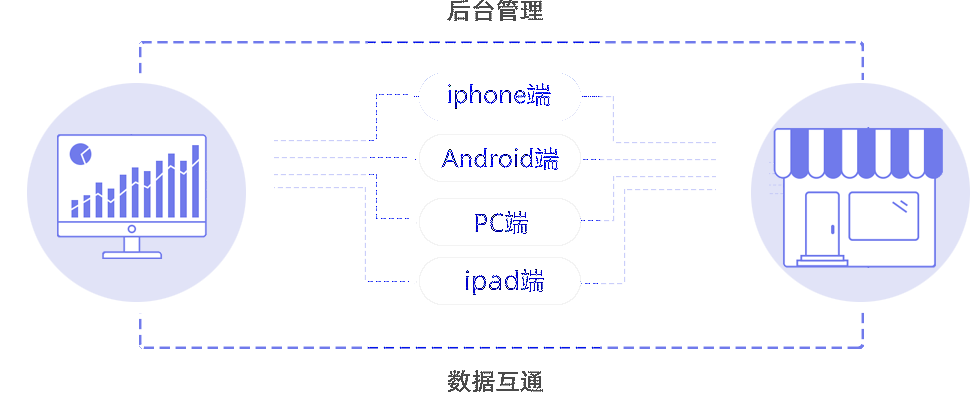 打通數據多端同步,實現線上線下業務全覆蓋,并通過后臺統一管理